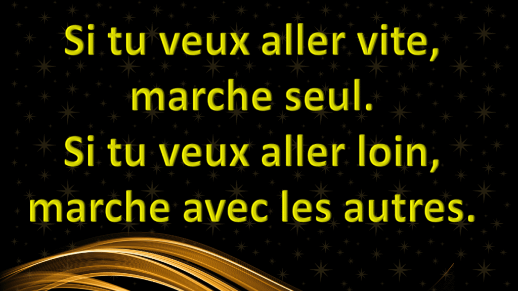 Aller loin, au contraire, demande de la patience, de la collaboration et surtout de la confiance. Travailler avec les autres, c’est accepter leurs différences, leurs rythmes, leurs idées. C’est parfois plus lent, plus complexe, mais tellement plus solide. Car quand on marche ensemble, on partage les forces, on divise les faiblesses et on se soutient quand le chemin devient difficile.